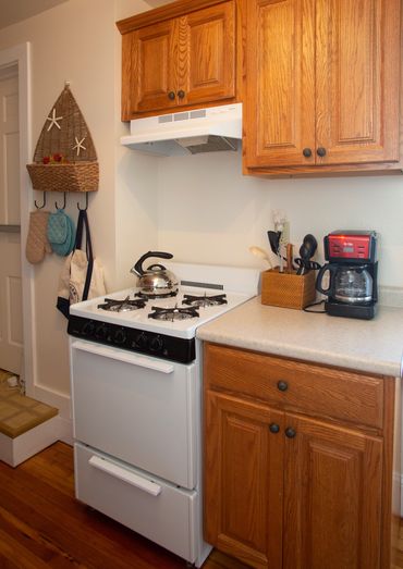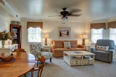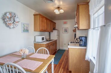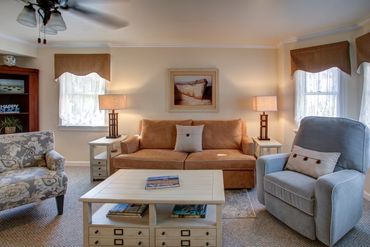 The coastal inspired Blake Suite, located on the second floor, includes two bedrooms - one with queen and one with two twin beds. Includes one full bathroom with tub/shower and half bathroom located within the queen bedroom. This suite also has a full size sleeper sofa in the living area, fully stocked kitchen with gas stove and separate dining area. Bright and charming this suite includes individual controlled central AC/heat, Comcast cable flat screen TV, DVD player and Wifi. Perfect for couples, girlfriend getaways and small families looking for an alternative to a B & B.