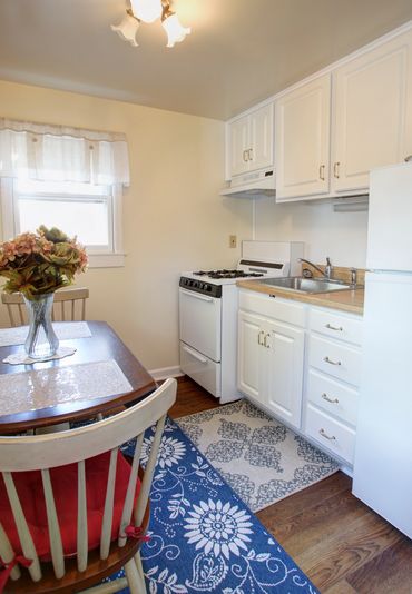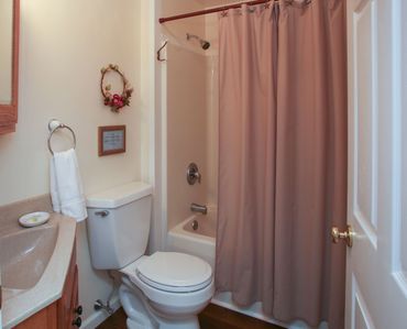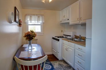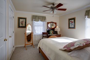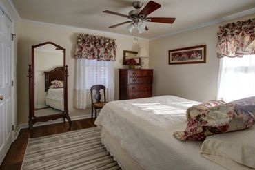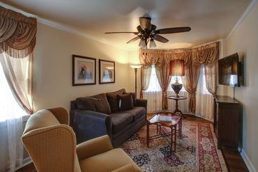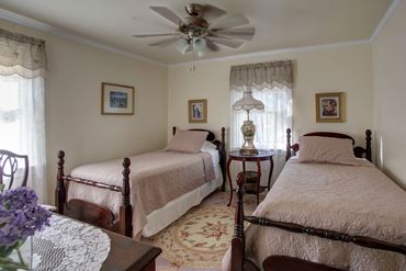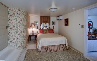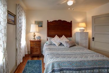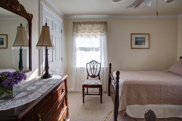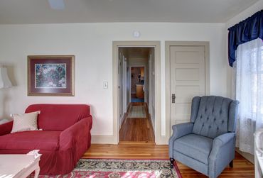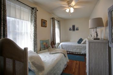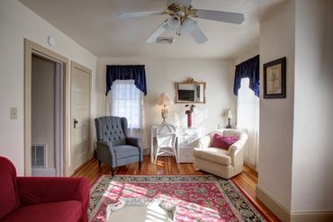 The Victorian inspired France Suite offers two bedrooms - one with queen size mattress and one with 2 twin mattresses. This is the only first floor suite; however, there are 4 porch steps to enter. Includes one full bathroom with shower/tub and one half bathroom within the queen bedroom. The comfortable living area includes a full size pull out sleeper sofa and flat screen TV. Fully stocked kitchen with gas stove and separate dining area for 4 completes the suite. Comcast cable, DVD player, WiFi and individually controlled central AC/ heat . Perfect for couples, girlfriends and small families looking for a perfect alternative to a B & B. Rates $375/ night plus tax