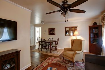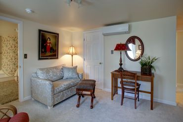 This artist inspired whimsical suite hosts one queen sized bedroom with a separate parlor area, separate eat-in kitchen with gas stove, and one full bathroom with shower. Comcast cable flat screen TV, DVD player, Individually controlled AC units. It is located on the second floor and is a perfect escape for couples.
